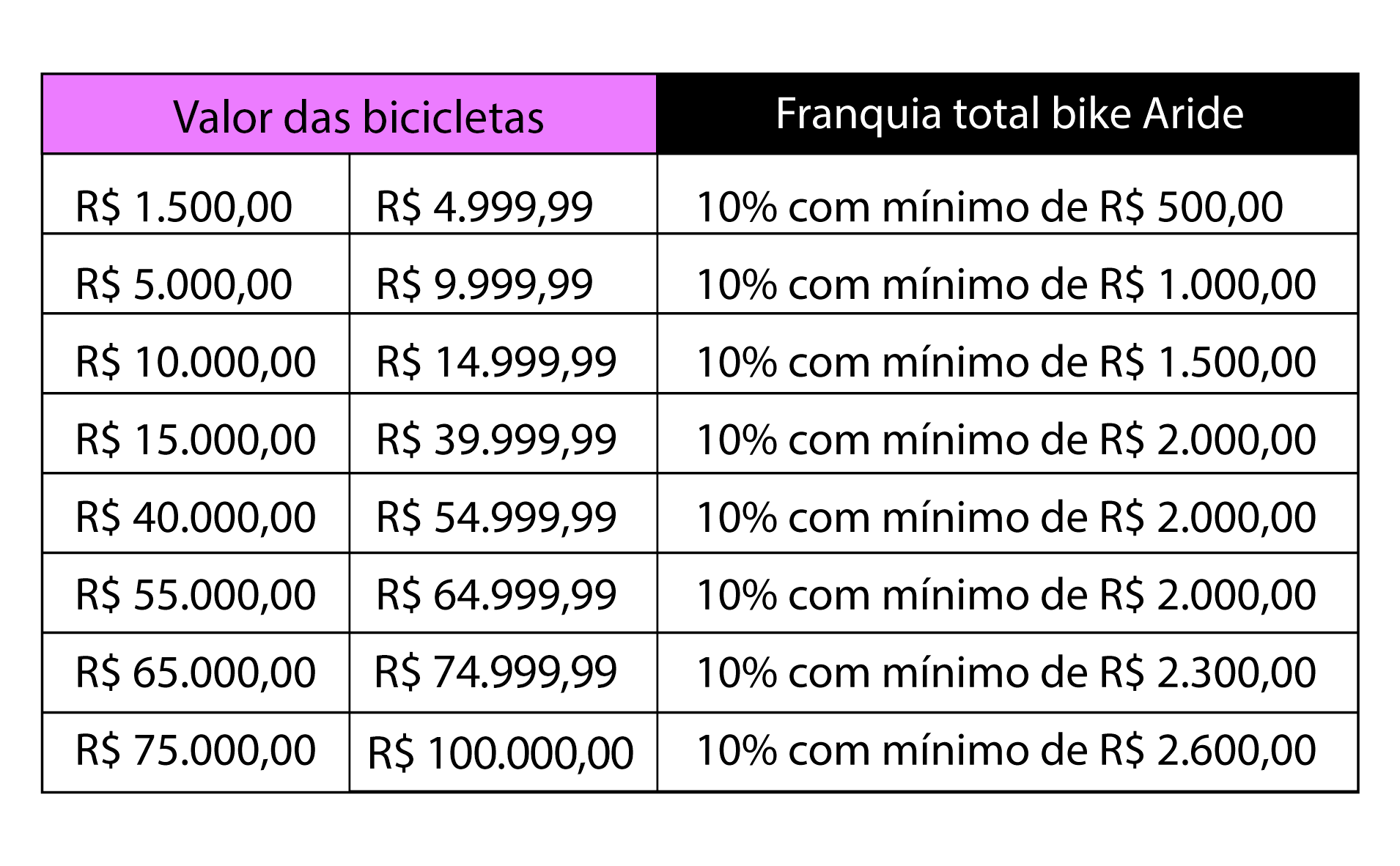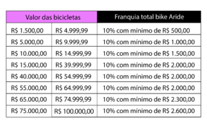 O Seguro de Bike da Aride é um seguro completo (registrado na SUSEP e fornecido pela seguradora AKAD ou SURA) e oferece as seguintes coberturas: